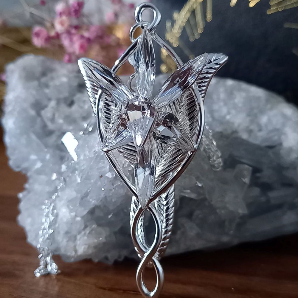 Tauche ein in die fantastische Fantasy Welt von Mittelerde! Arwens Abendstern ist ein Symbol unsterblicher und unendlicher Liebe. Arwen schenkte einst Aragorn die Kette mit dem Anhänger als Beweis Ihrer unsterblichen Liebe. Die edle Kette ist dem Original aus den bekannten Herr der Ringe Filmen von Peter Jackson nachempfunden und überzeugt durch seine hohe Qualitat. Noble Collection hat mit der Abendstern Kette einen echten Blickfang für Fans der Filme und Bücher kreiert. Beweise mit diesem einzigartigen Herr der Ringe Accessoires deine Liebe und mach einen Herzensmenschen ein einzigartiges Geschenk.