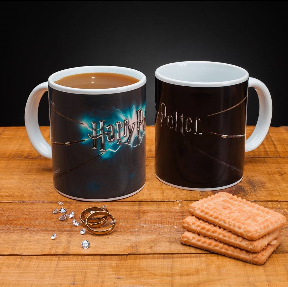 Die Harry Potter Thermoeffekt Tasse ist ein absolutes Highlight für alle Fans der magischen Welt von Hogwarts und ein Must-Have für jede Harry Potter-Sammlung. Diese außergewöhnliche Tasse verwandelt das morgendliche Getränk in ein zauberhaftes Erlebnis: Beim Einfüllen heißer Flüssigkeit erstrahlen die Zauberstäbe auf der Vorderseite der Tasse und lassen Blitze auf den berühmten Harry Potter-Schriftzug schießen. Diese Magie im Alltag bringt die legendären Abenteuer von Harry, Hermine und Ron direkt auf den Frühstückstisch.