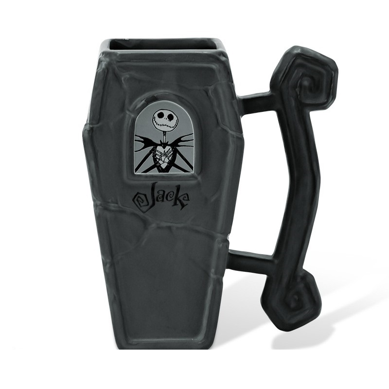 Disney Nightmare before Christmas Lizenzprodukt - Jack Skellington Sarg 3D Motiv - Fassungsvermögen 350 ml - Tasse mit Deckel- Lieferung in Geschenkbox