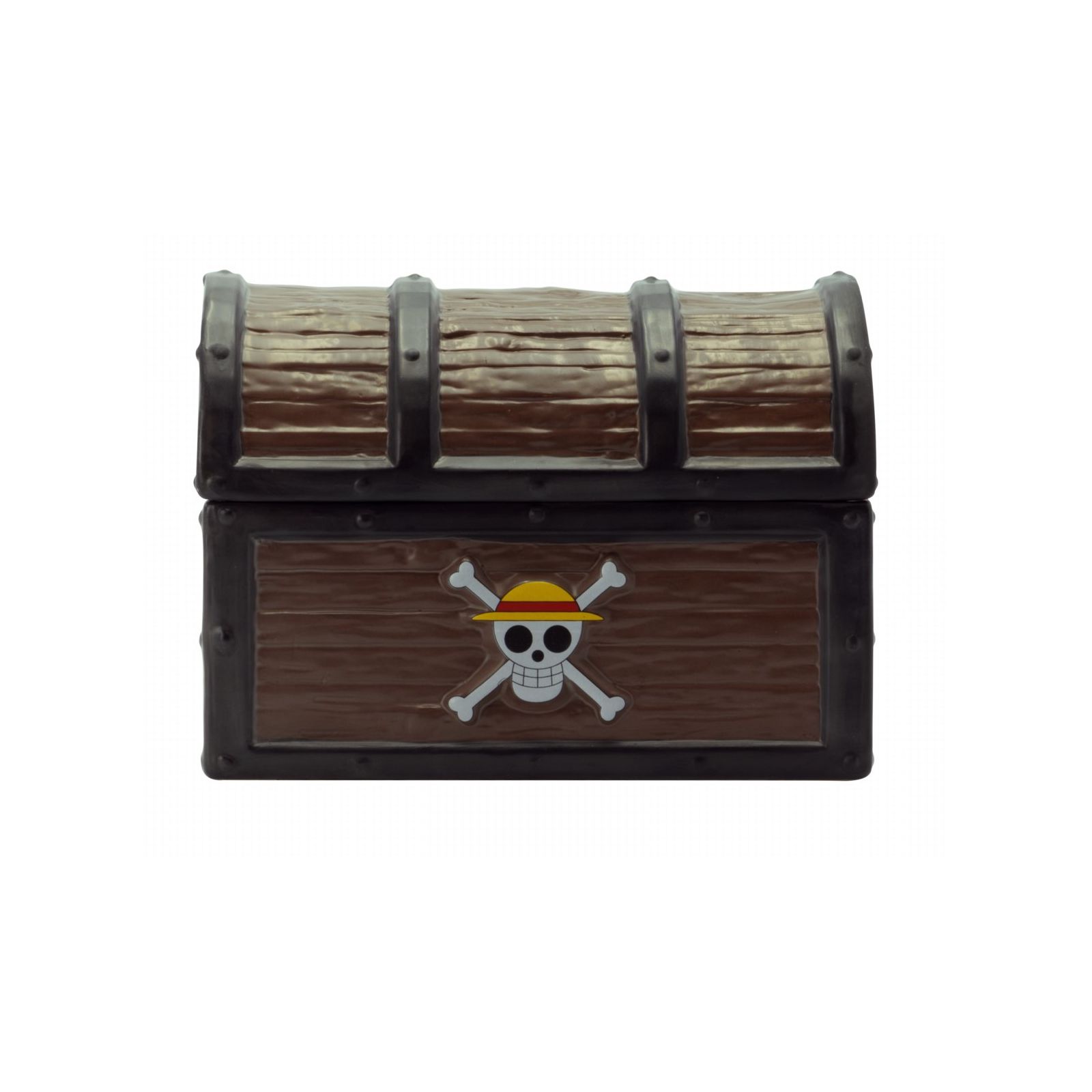 One Piece Lizenzprodukt - Keksdose in Form einer Piraten Totenkopf-Schatztruhe, detailreiche Gestaltung mit dem markanten Schriftzug "One Piece". - Material: Hergestellt aus hochwertigem Dolomit - Maße: 20 x 14 x 12 cm - Lieferung in Geschenkbox